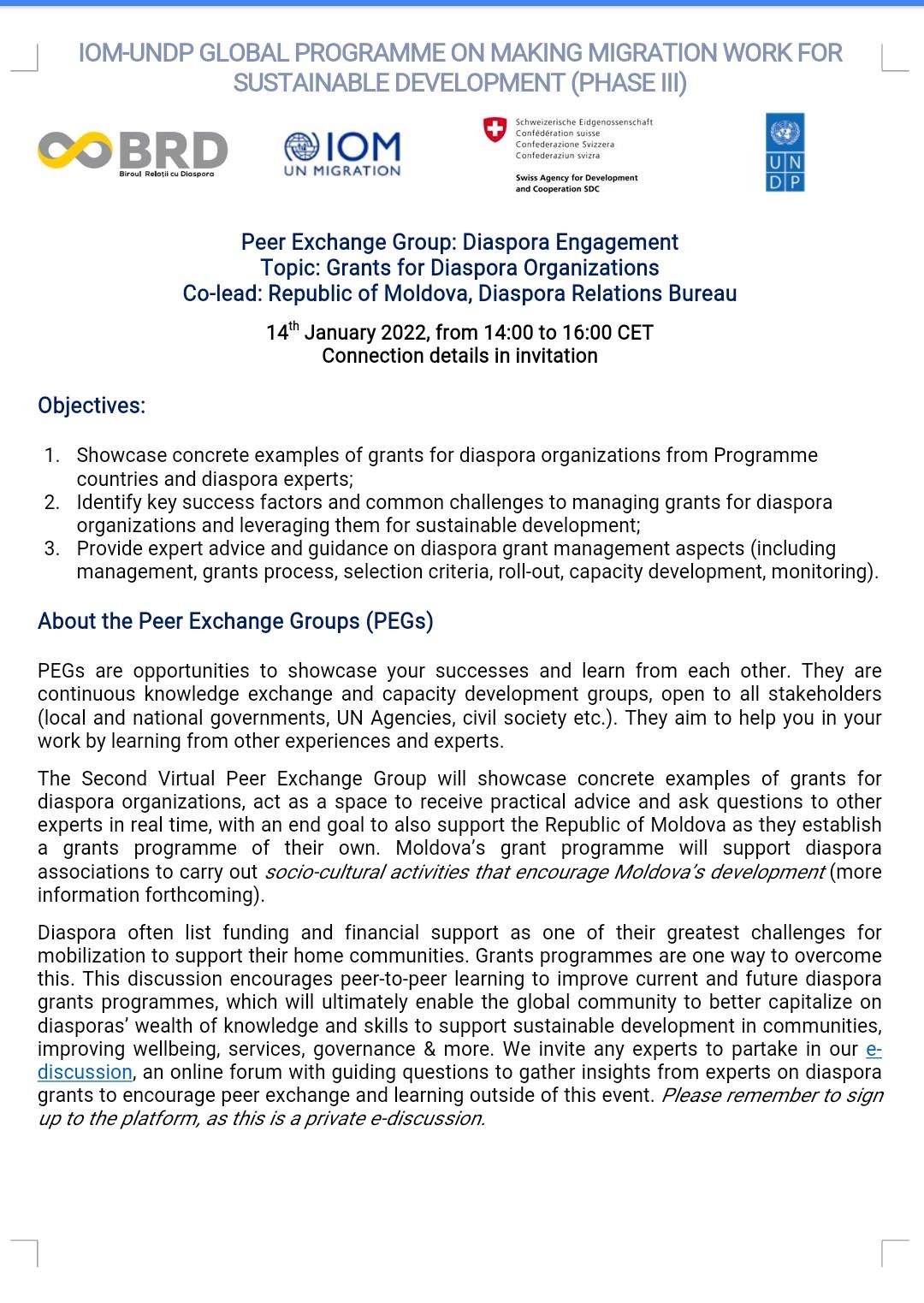 Biroul relații cu diaspora vă invită la un schimb de experiență privind acordarea de granturi pentru organizațiile diasporei.